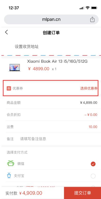 当满足使用优惠券的条件时,可在订单结算时使用优惠券,具体使用方法如下: